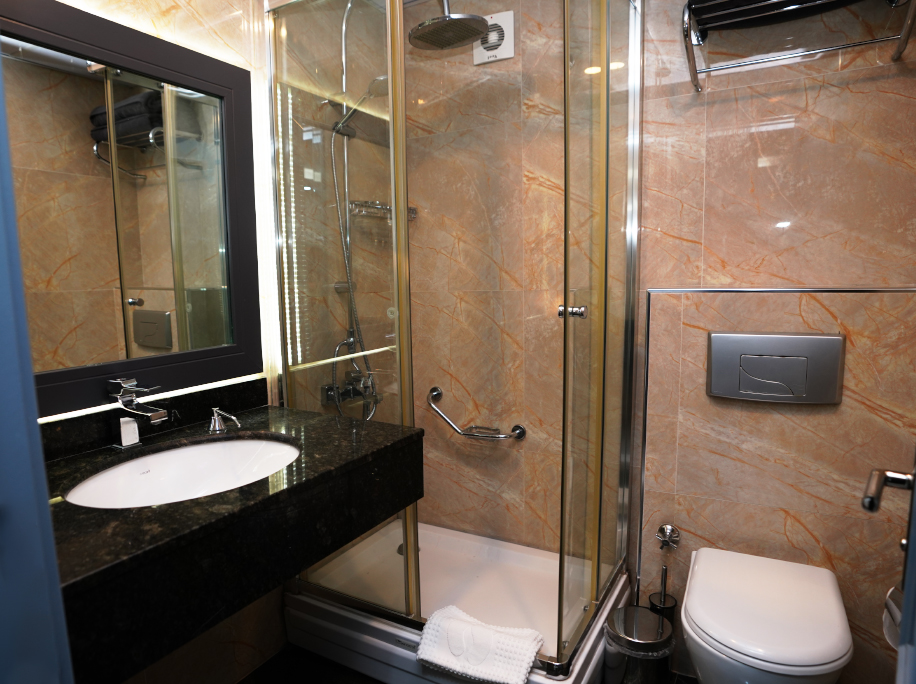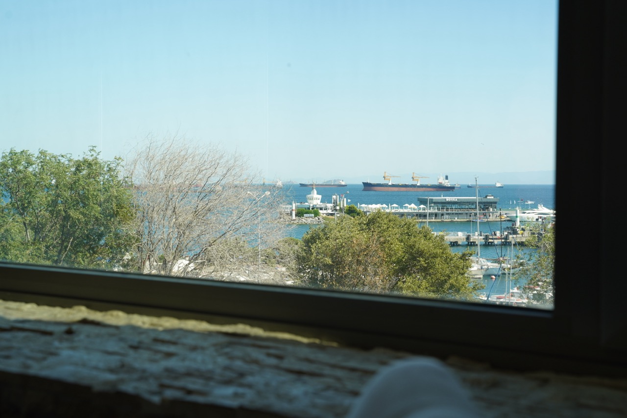 Bakırköy kıyısına bakan balkonlu oda; gün batımı eşliğinde huzur.