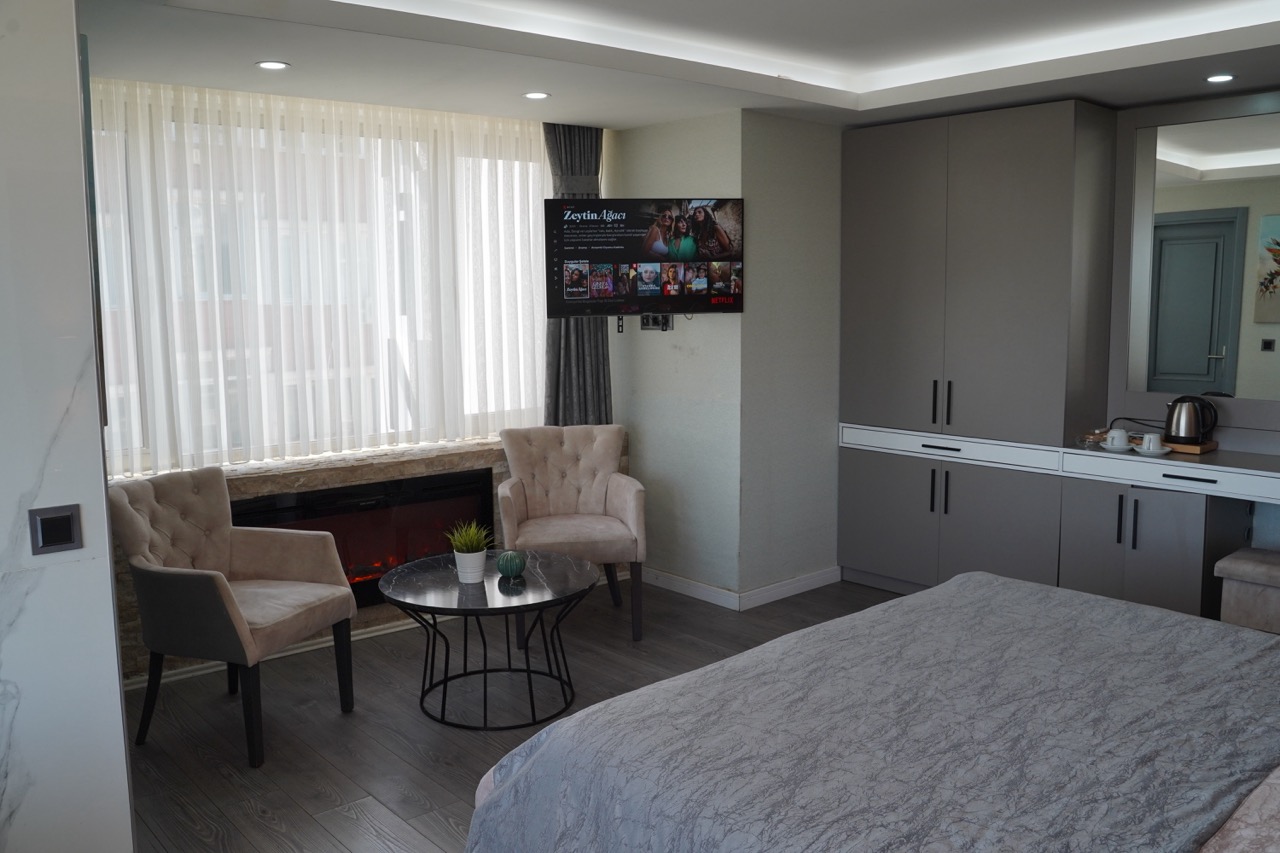 Daha geniş alan; şömine ve jakuzi ayrıcalığıyla romantik ve lüks konaklama.