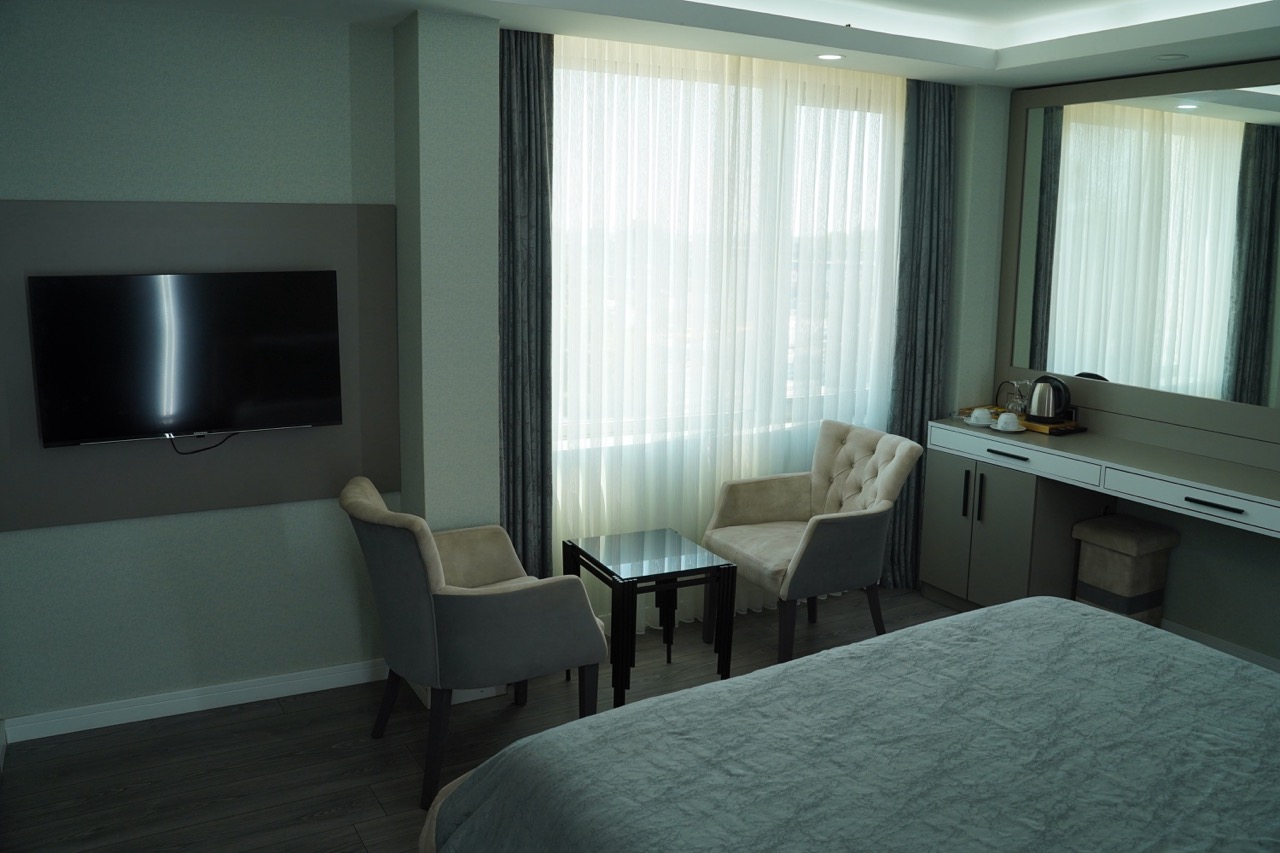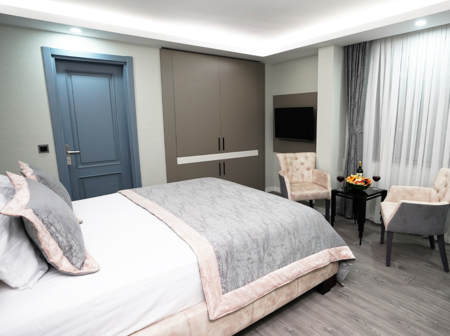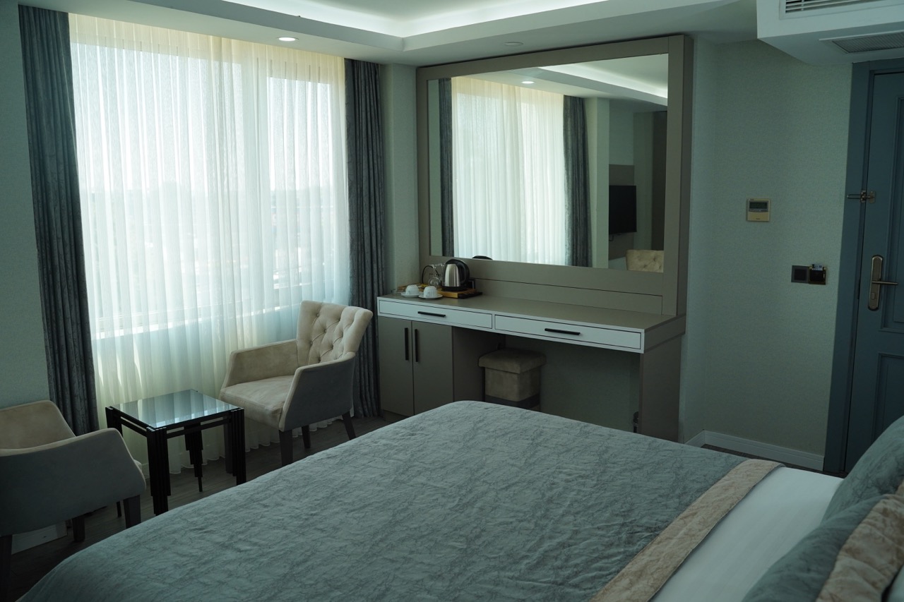Bakırköy kıyısına bakan balkonlu oda; gün batımı eşliğinde huzur.
